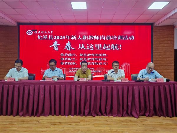 8月20日上午,尤溪县2025年新入职教师岗前培训开班仪式在尤溪县教师进修学校报告厅举行。仪式由尤溪县教师进修学校校长蔡华忠主持。福建师范大学培训学院副院长郑磊、尤溪县教育局局长郑长洪、尤溪县教育局副局长阮荣臻以及尤溪县教师进修学校工会主席王永瑜等出席开班仪式,全体新入职教师共99人参与本次培训。